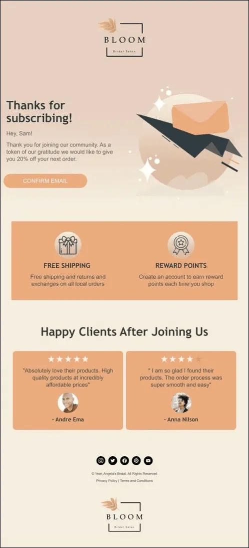 1. Bloom Bridal Salon – Welcome/Subscription Promotional Email